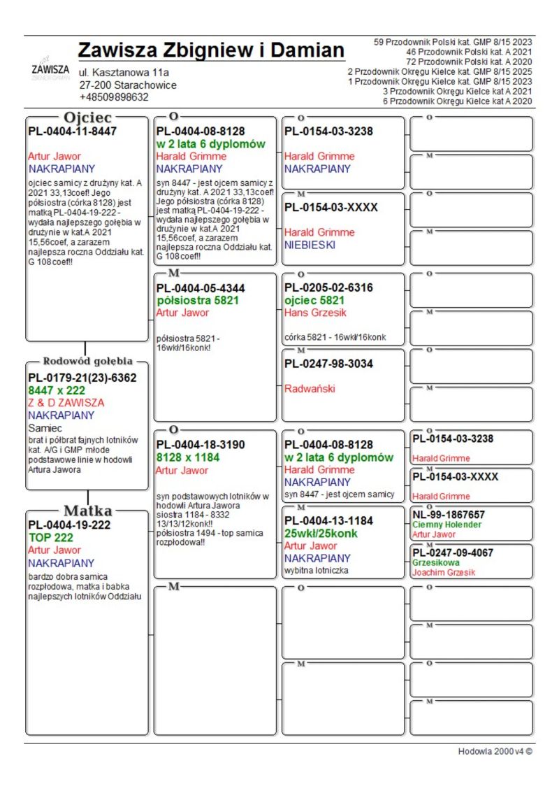 PL-0179-21(23)-6362 - Z&D Zawisza - imbred 8128 H.Grimme (100% A.Jawor) - półbrat 12 rocznej Okręgu kat. G