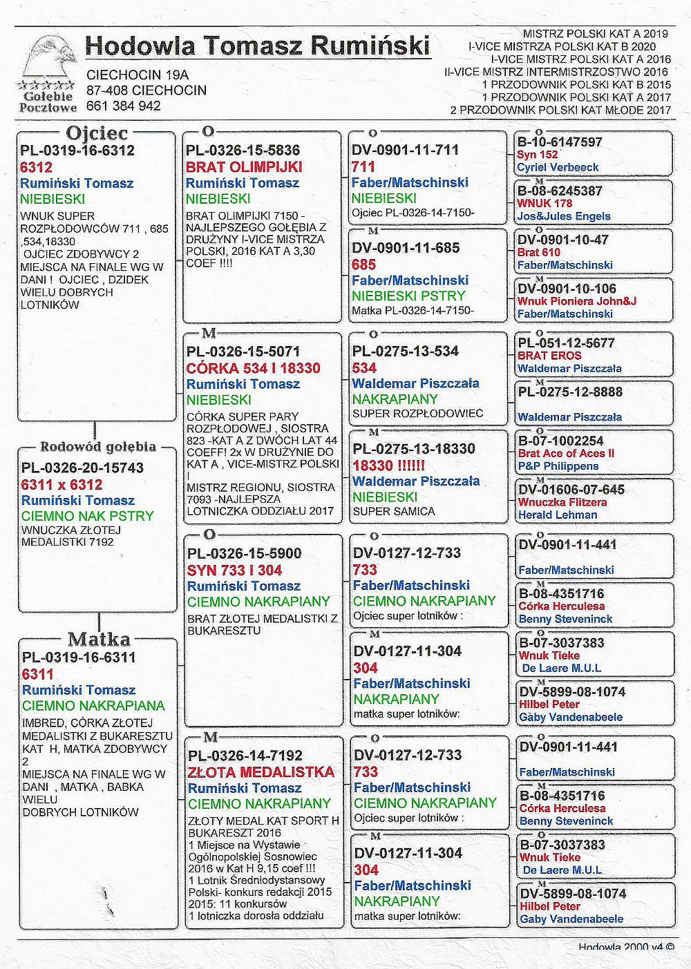 PL-0326-20-15743 - oryg. Tomasz Rumiński (Van Dyck/ Faber), wnuczka "7192" - złoty medal kat. H - Bukareszt 2016