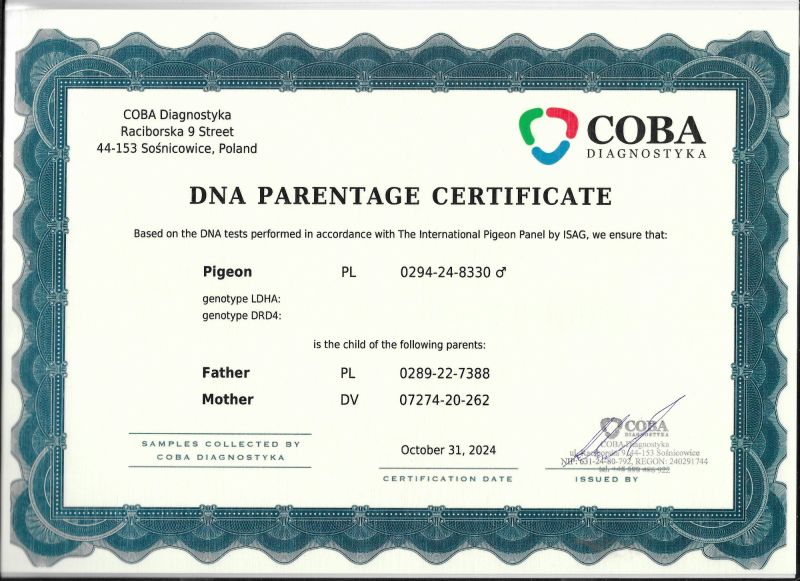 Płeć: młody gołąb Hodowca - rasa: Robert Stańczak Zakończenie: 24.11.2025 godz. 18:52