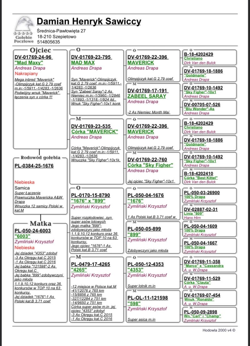Kapitalne łączenie inbred Mavericka x córka 12 samicy Polski w Kat.M , drobnej budowy prawdopodobnie SAMICA o super pochodzeniu , więcej informacji w rodowodzie i pod telefonem,po zakupie możliwa wysyłka w granicy 150-180zł lub odbiór osobisty. Godny polecenia gołąbek !