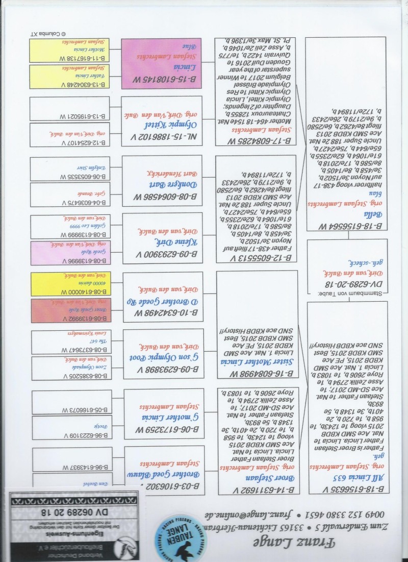 *SAMICA* Oryginalny gołab z hodowli Franza Lange. Są to gołębie które maja potwierdzona wartość rozpłodowa. Ich dzieci i wnuki bardzo dobrze latały. odbiór gołębi po stronie kupującego. kontakt 783495112 *100% Stefan Lambrechts. ojciec to kuzyn Lincii najlepszej samicy lotowej w historii Belgii w sprincie, a matka jest wnuczką Linci oraz Olimpic Kittel i Kleine Dirk od Dirka van de Bulcka. SUPER SAMICA ROZPŁODOWA! MATKA: