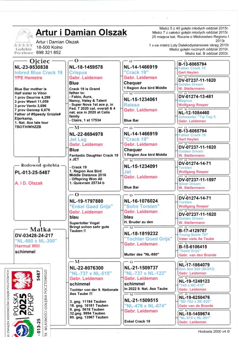 PL-013-25-5487 Podwójny wnuk Crack 19 x wnuczka 9 Asa Holandii 2022 A. & B. Leideman