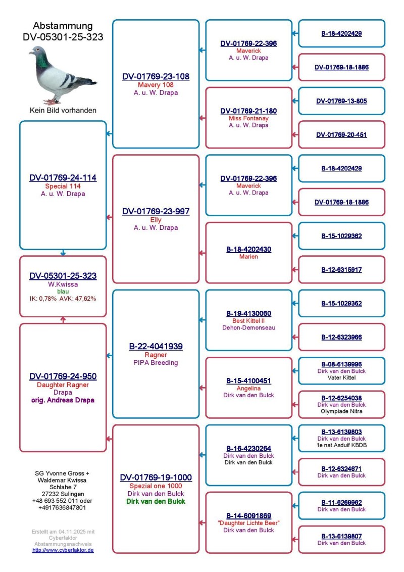 Płeć: młody gołąb Hodowca - rasa: oryg. Waldemar Kwissa Zakończenie: 21.11.2025 godz. 19:20