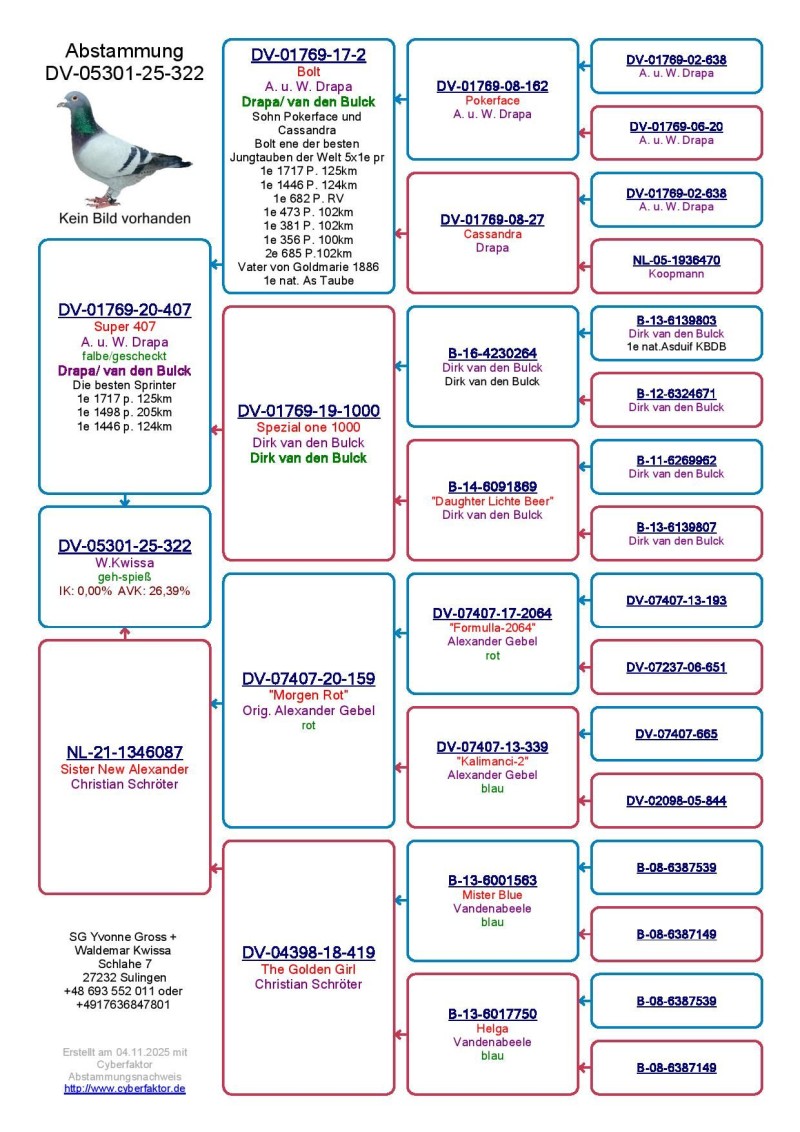 Płeć: młody gołąb Hodowca - rasa: oryg. Waldemar Kwissa Zakończenie: 21.11.2025 godz. 19:18