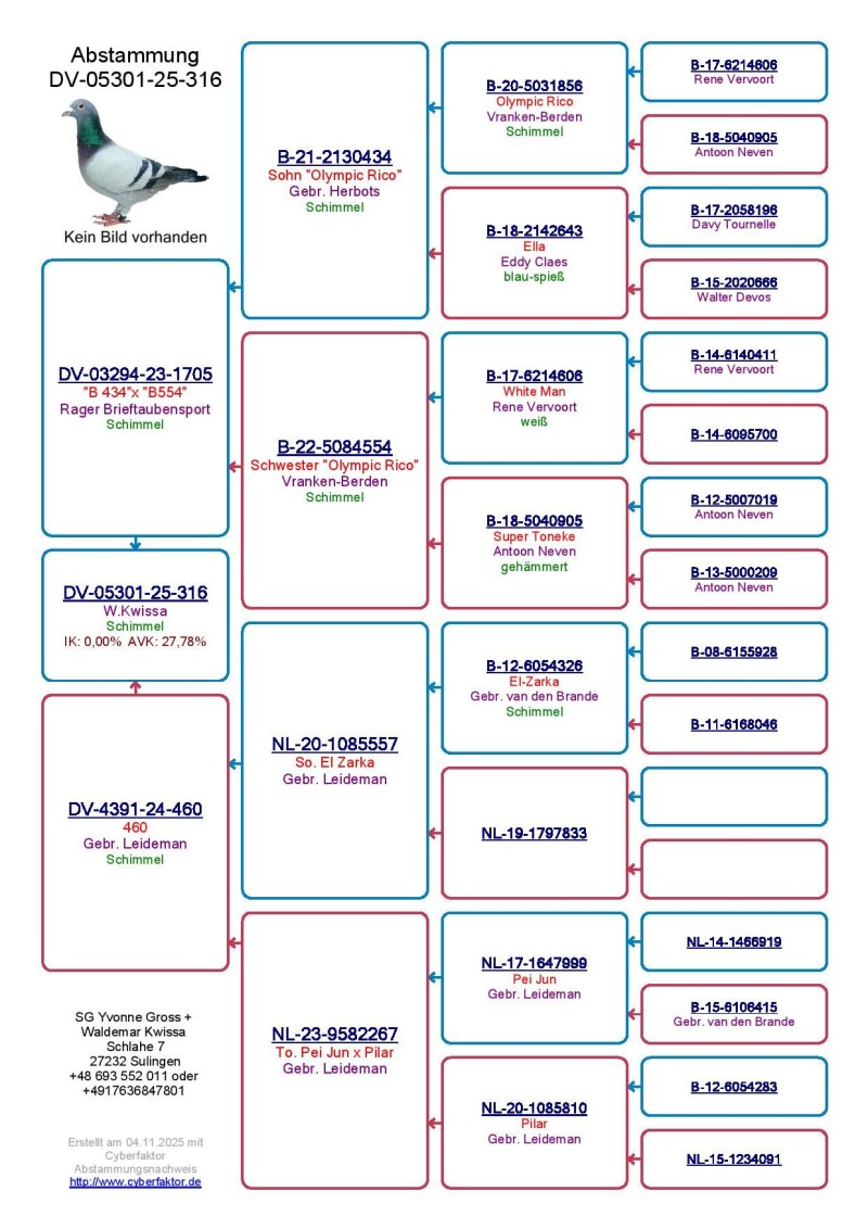 Płeć: młody gołąb Hodowca - rasa: oryg. Waldemar Kwissa Zakończenie: 21.11.2025 godz. 19:16