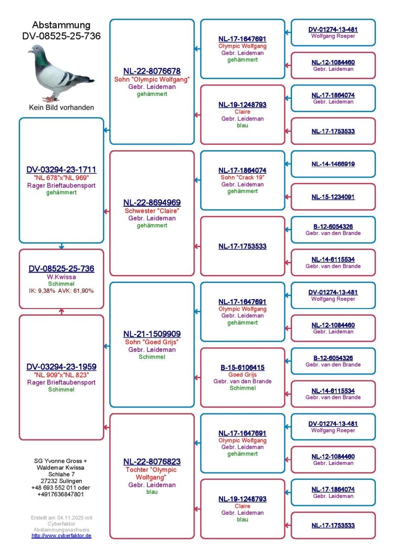 Płeć: młody gołąb Hodowca - rasa: oryg. Waldemar Kwissa Zakończenie: 21.11.2025 godz. 19:14