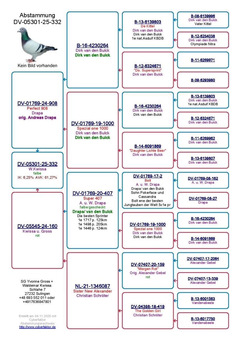 Płeć: młody gołąb Hodowca - rasa: oryg. Waldemar Kwissa Zakończenie: 21.11.2025 godz. 19:10