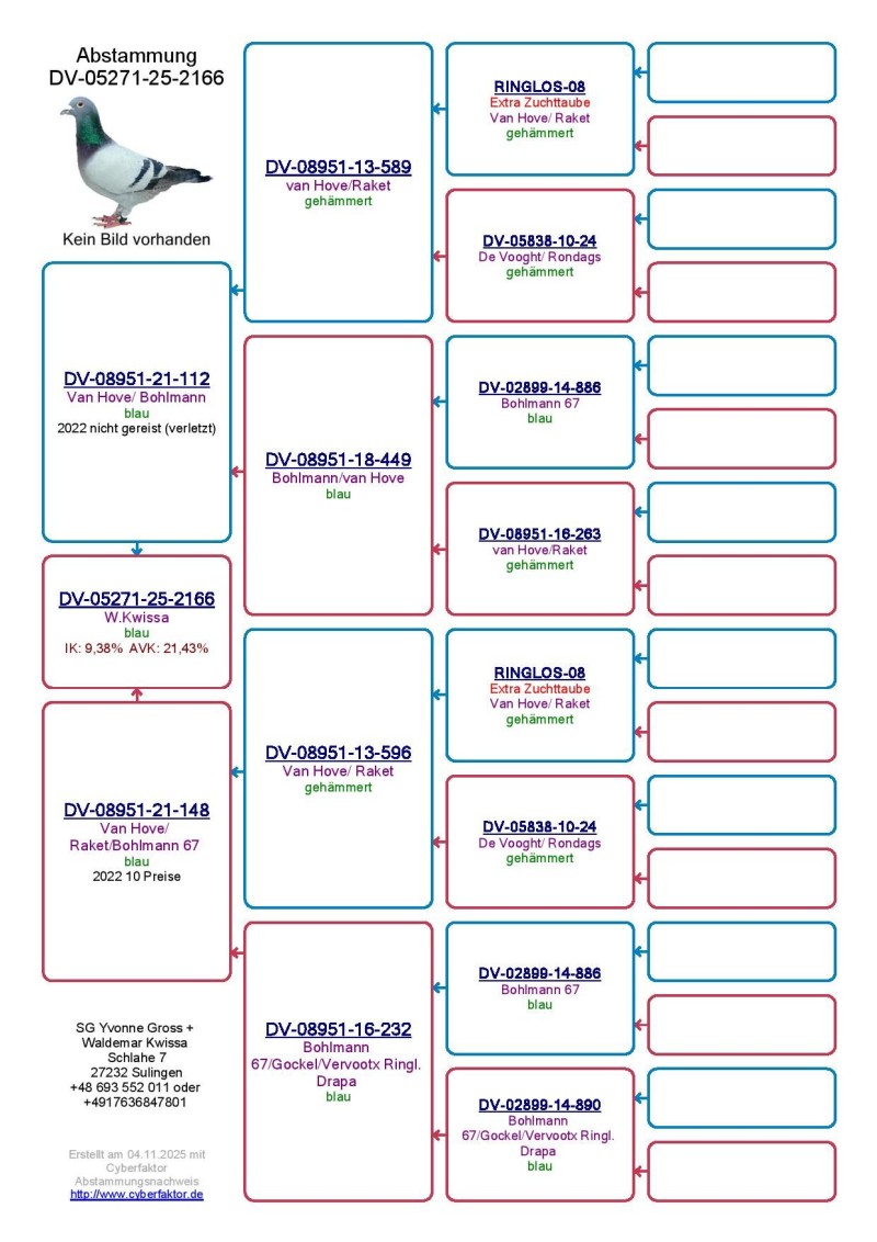 Płeć: młody gołąb Hodowca - rasa: oryg. Waldemar Kwissa Zakończenie: 21.11.2025 godz. 19:06