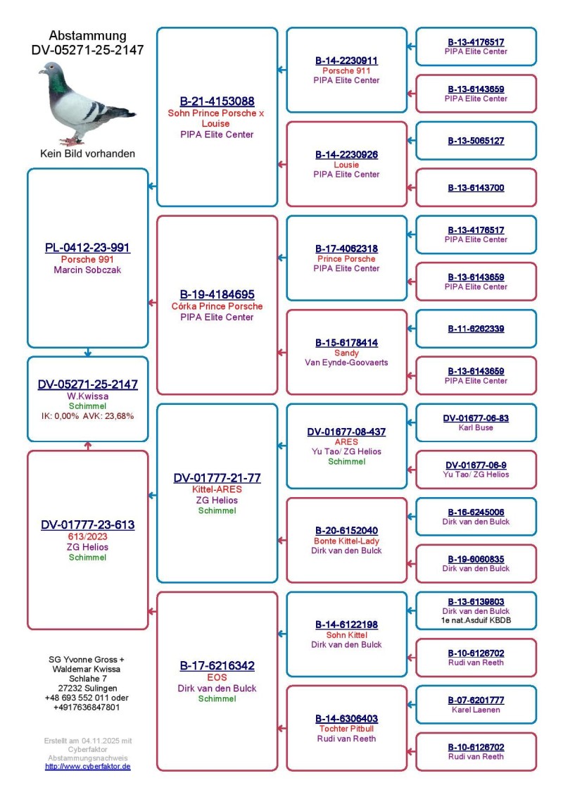 Płeć: młody gołąb Hodowca - rasa: oryg. Waldemar Kwissa Zakończenie: 21.11.2025 godz. 19:04