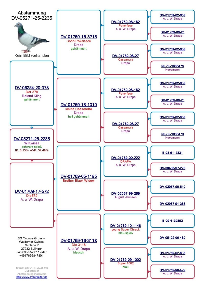 Płeć: młody gołąb Hodowca - rasa: oryg. Waldemar Kwissa Zakończenie: 21.11.2025 godz. 18:56