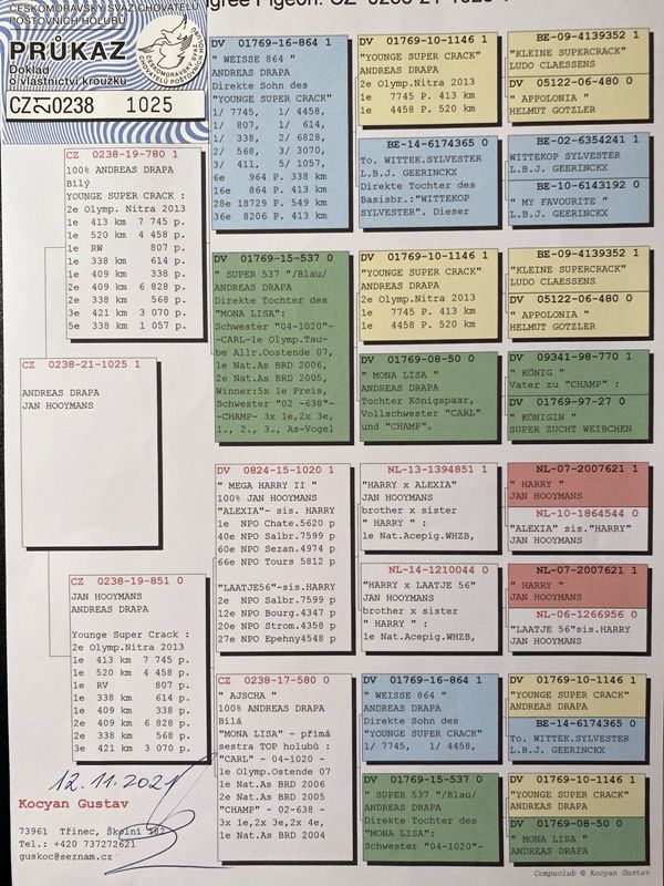 Oryginalny gołąb z hodowli Gustava Kocyana, sprzedawany z gołębnika A.Sękulskiego ze względu na likwidację hodowli. Szczegóły pochodzenia w rodowodzie. Więcej informacji pod nr tel.: 501 651 478