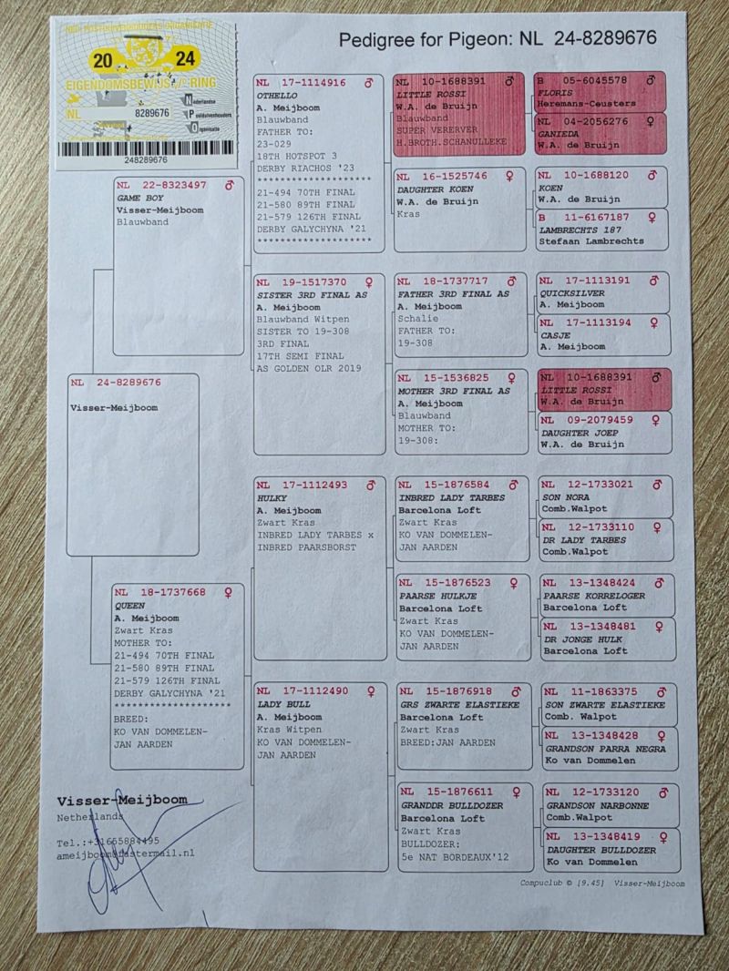 Oryginalny gołąb z hodowli Visser - Meijboom. Szczegóły pochodzenia zamieszczone w rodowodzie. Gołąb posiada pełną dokumentację! Rodowód + Karta własności! Więcej informacji pod numerem telefonu: 721 619 412