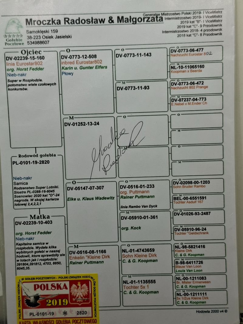 Oryginalny gołąb z hodowli Mroczka Radosław & Małgorzata . Szczegóły pochodzenia w rodowodzie . Więcej informacji pod nr. tel. 512553740 . Oferowany gołąb to samica... transport firmą kurierską