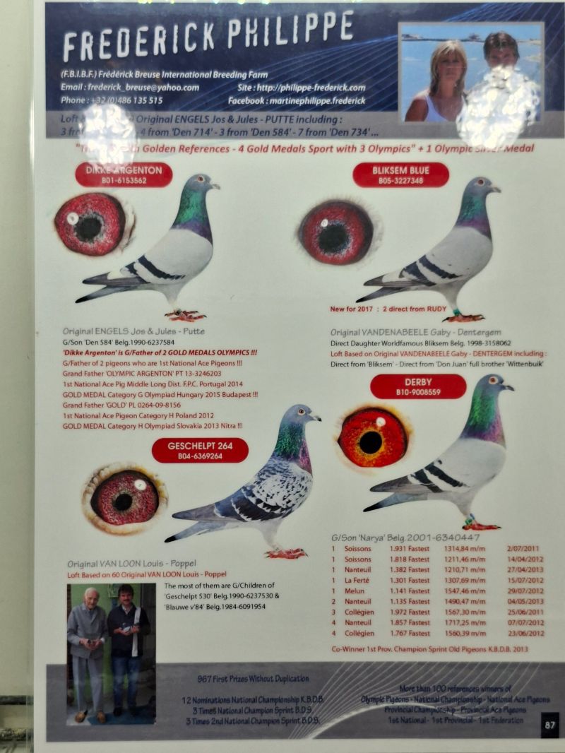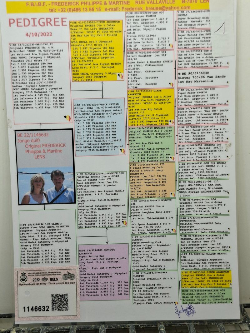 Oryginalny gołąb z hodowli Frederick Philippe & Martine Lens . Szczegóły pochodzenia w rodowodzie . Więcej informacji pod nr. tel. 512553740 . Oferowany gołąb to samica.. transport firmą kurierską