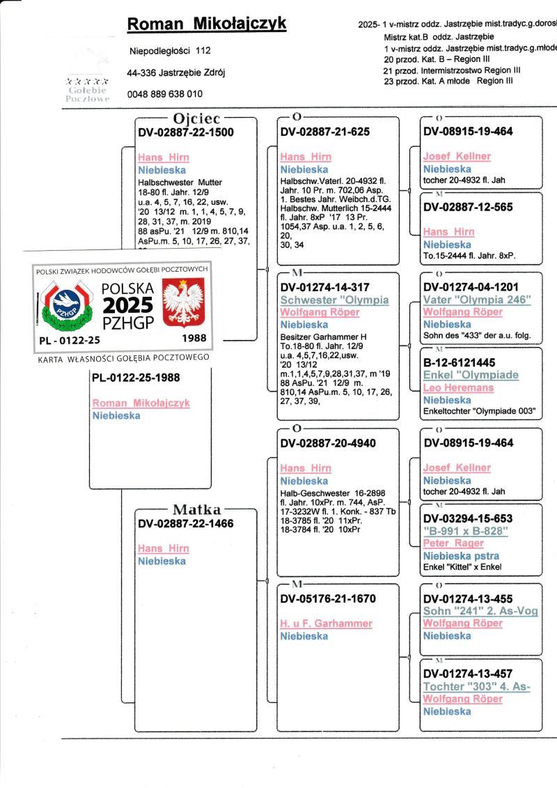Płeć: młody gołąb Hodowca - rasa: oryg. Roman Mikołajczyk Zakończenie: 25.11.2025 godz. 19:16
