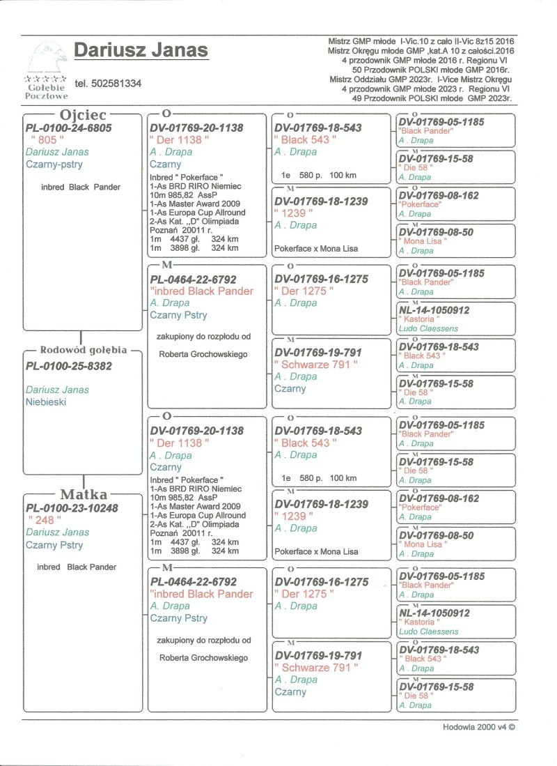 NL-16-1500500 Oryg. Pigeon World 100% Jan Hooymans Inbred na "Harry"