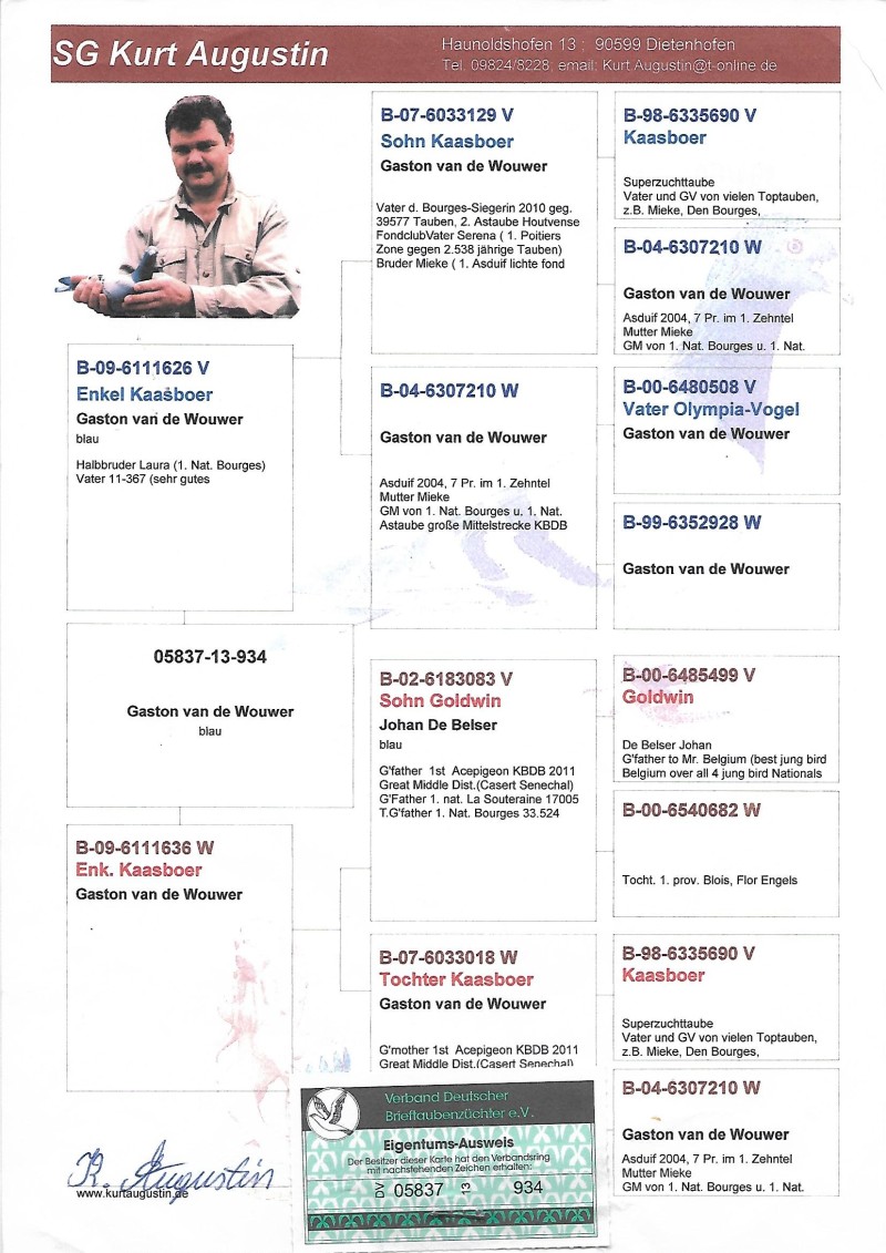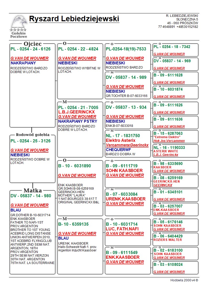 *prawdopodobnie samica* Oryginalny gołąb z hodowli Ryszard Lebiedziejewskiego. Szczegóły pochodzenia w rodowodzie. Więcej informacji pod nr tel.: 530 152 182. **Gołębie po kuracjach przygotowane do sezonu. **Transport gołębi prywatnym kurierem 100 zł do 3 szt. od 4szt do 6szt 150zł.