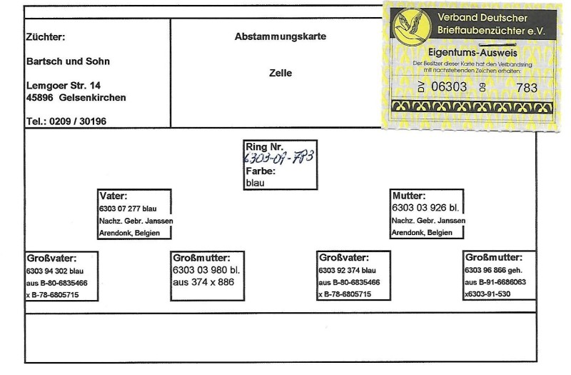 *prawdopodobnie samica* Oryginalny gołąb z hodowli Ryszard Lebiedziejewskiego. Szczegóły pochodzenia w rodowodzie. Więcej informacji pod nr tel.: 530 152 182. **Gołębie po kuracjach przygotowane do sezonu. **Transport gołębi prywatnym kurierem 100 zł do 3 szt. od 4szt do 6szt 150zł.
