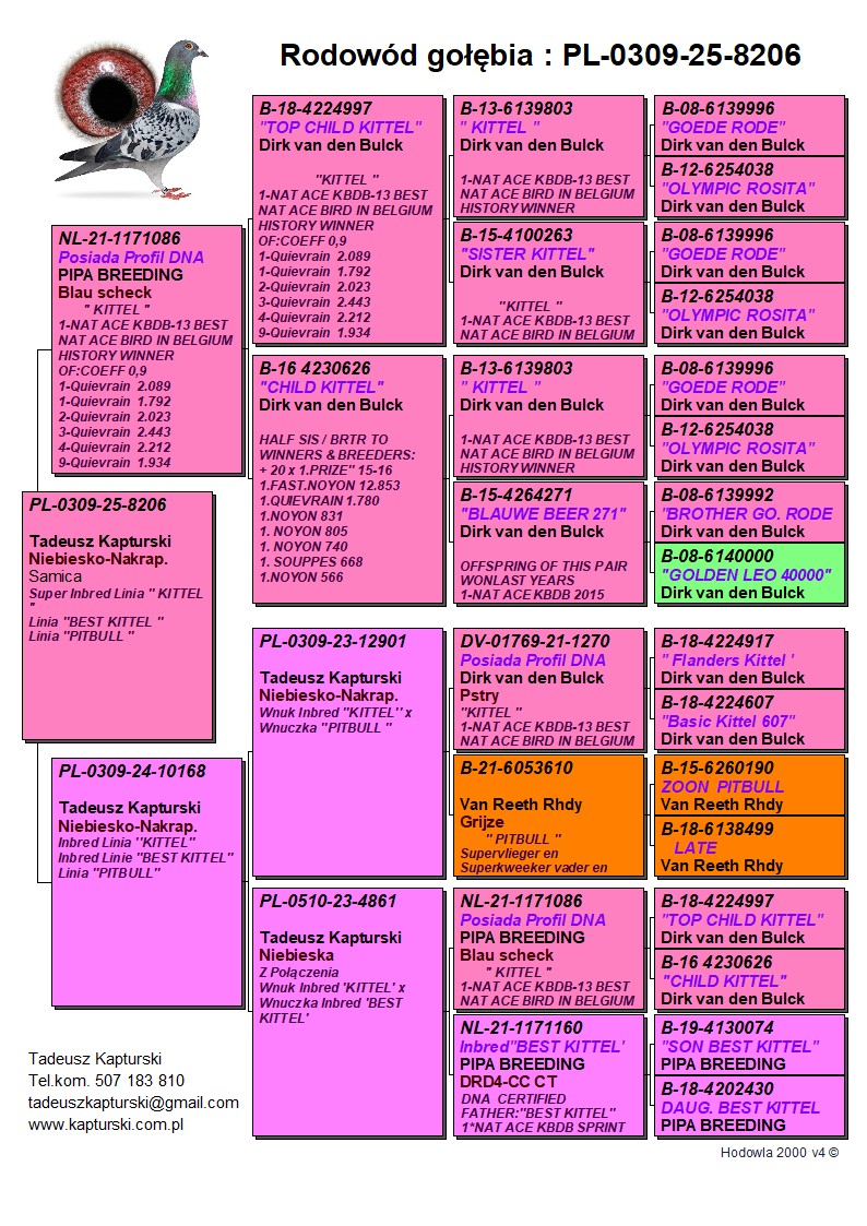 Oryginalny gołąb z hodowli Tadeusza Kapturskiego. Szczegóły pochodzenia w rodowodzie. Więcej informacji pod nr tel.: 507183810 ***transport kurier 165 zł *na życzenie certyfikat DNA