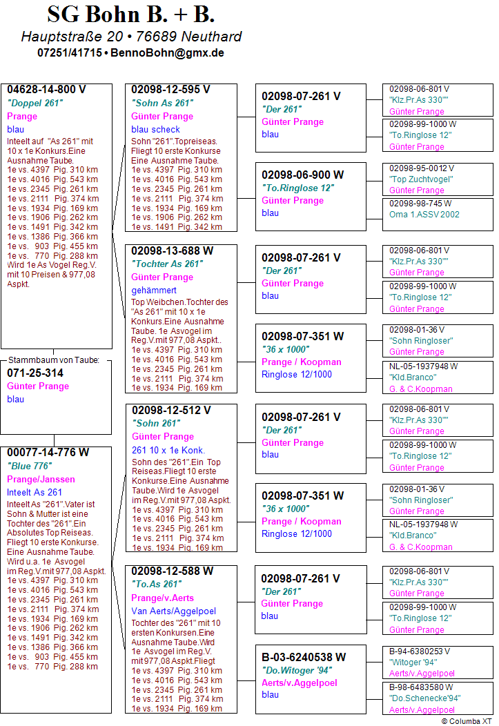 Ojciec i matka gołąbka to inbred "Der 261" oraz "Ringlose 12". Z linii 100% Günter Prange & Janssen. Bardzo mocny inbred !!