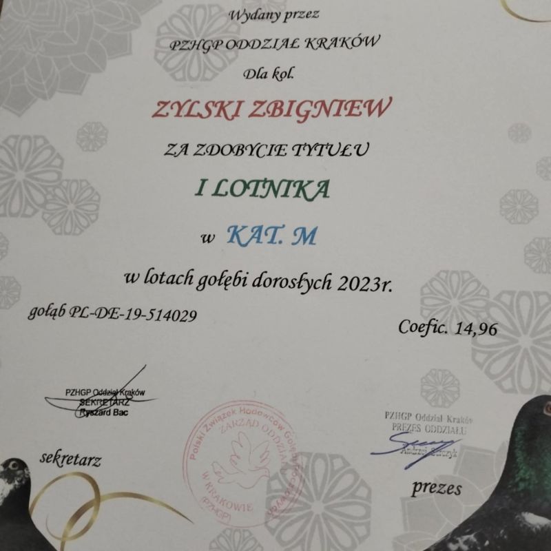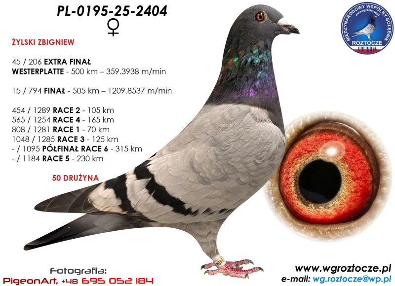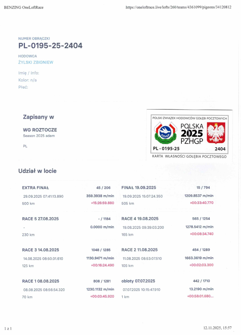 PL-0195-25-2404 WG ROZTOCZE FINAŁ 15poz.505km Extra Finał 45poz.500km 50 Drużyna 2x500km