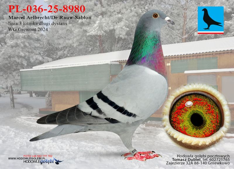 Prawdopodobnie Samica. Ptaki z linii 550 x 107. Po gołębiach tych posiadam super gołębie rozpłodowe. W krótkim czasie ich dzieci jak i one same dały mi super lotniki, między innymi 2 i 3 lotnika oddziału, oraz wiele innych wartościowych lotników w lotach młodych i starych. Przepiękne gołębie na wymagające loty. Najlepsze umięśnienie, super budowa i aksamitne upierzenie. Do tego super wyniki na WG. U mnie WG Bojano 2023 wnuk 12 miejsce półfinał, 2024 wnuk 34 miejsce półfinał. U innych hodowców 2022 roku córka 107 wydała 4 gołębia z finału WG Mazury! W 2024 syn 107 x 550 wydał 3 ASA długi dystans, 7 miejsce Super Finał 515 km!!! ****************************************** Moje stado opiera się na ptakach które w latach 2012-2016 pozwoliły mi wygrywać w oddziale i okręgu w różnych kategoriach, lecąc w 2 różnych oddziałach 036 i 0394. Najważniejsze osiągnięcia to Mistrz okręgu kat. C 49 miejsce w Polsce, II vice Mistrz okręgu kat. B i młode, Super Mistrz Oddziału. Wszystkie wyniki dokładnie opisane na końcu aukcji. Do lotowania wróciłem „na chwilę” w 2021 r. na nowym miejscu zamieszkania w bardzo ciężkim sezonie 3 x vice Mistrz Oddziału gołębi młodych. 2,5,11,16,19,22,23,27,28,40 pozycje w klasyfikacji lotników. 3 x Mistrz sekcji oraz XIII przodownika okręgu Bydgoszcz. Zacząłem też lotowanie na WG wysyłając po kilka sztuk na sezon. 2021 – konkursy na finałach na WG Krakus i Super Gołąb, 2022 - 14 miejsce Extra Finał 518 km WG Super Gołąb, 2023 – 11 miejsce Finał 502 km WG Bojano. 2024 - 4 miejsce Półfinał WG Tatry, WG Bojano 4 miejsce lot konkursowy, 34 miejsce Półfinał, 17 miejsce Drużyna, 54, 78, 79, 81 lotnik. Po moich gołębiach w 2024 ptaki wylatały: po pełnej parze 68 miejsce Finał Super Gołąb, po samcu 8 miejsce Extra Finał WG Warmia, po samicy 16 miejsce Finał WG Roztocze, po samcu 3 AS długi dystans i 7 miejsce Extra Finał MWG Giewont. 2025 31 lotnik Derby Carmelo Yupi, 43 miejsce Extra Finał WG Tatry, 12 miejsce Finał WG Carpatia, 40 miejsce Finał WG Krakus (56 seria na 849 hodowców 2/2 w konkursie z 3 wysłanych ptaków), po samicy ode mnie 24 miejsce Finał Corabia One Loft Race. ********************** Wszystkie gołębie przyjęły komplet szczepień(Pharmavac, salmovir + ospa). Więcej informacji w rodowodach, zapraszam też do kontaktu telefonicznego, mailowego bądź WhatsApp. ********************* TRANSPORT, ptaki zostaną dostarczone transportem prywatnym na początku grudnia, cena 1-2 szt. 100 zł, 3-6 szt. 150 zł, 7 i więcej 200 zł. Koszty transportu płatne kierowcy, za gołębie kierowcy bądź na konto, jak wygodniej. Istnieje również możliwość wcześniejszej wysyłki kurierskiej w cenie 150 zł do 6 szt. Zapraszam również do odbioru osobistego.