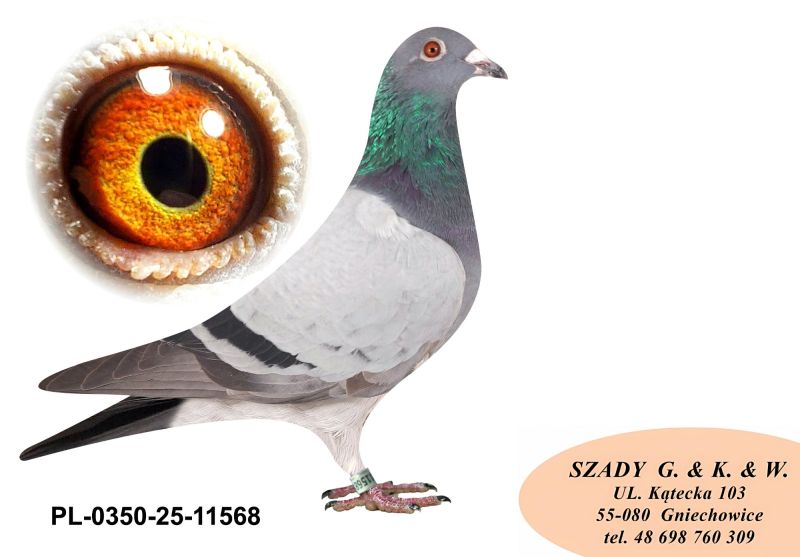 Witam. Gołąb pochodzi z hodowli Szady GKW. Szczegóły pochodzenia w rodowodzie. Zaszczepiony 16.09.2025 szczepionką RP VACC. Płatność za gołębia - przelew na konto. Transport będę organizował po zakończeniu wszystkich aukcji na początku grudnia. Koszt transportu indywidualnie w zależności od odległości i ilości gołębi. Więcej informacji pod nr tel. : 698 760 309. Prawdopodobnie samiec.