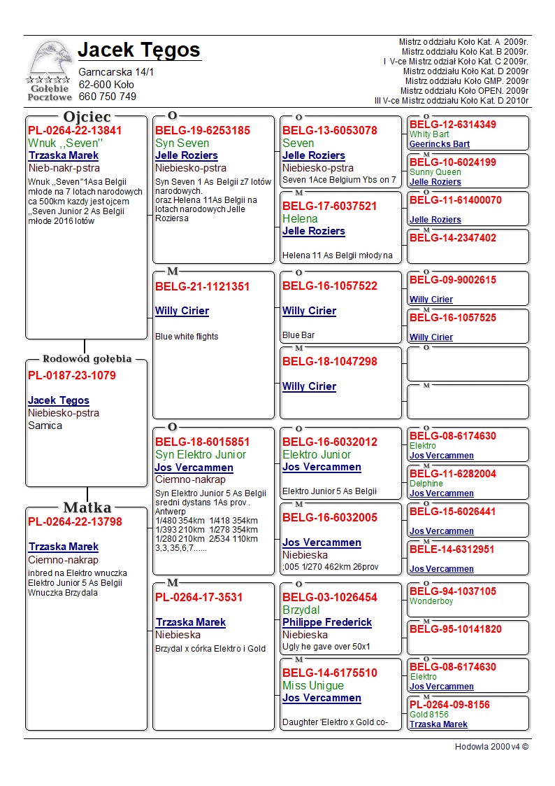 Oryginalny gołąb z hodowli Jacek Tęgos. Szczegóły pochodzenia w rodowodzie. Więcej informacji pod nr tel.: 660 750 749