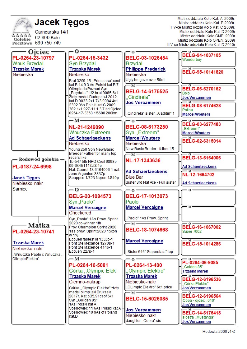 Oryginalny gołąb z hodowli Jacek Tęgos. Szczegóły pochodzenia w rodowodzie. Więcej informacji pod nr tel.: 660 750 749