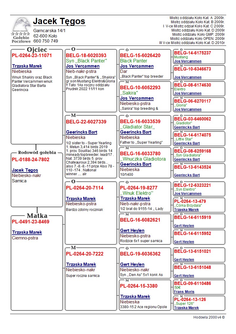 Oryginalny gołąb z hodowli Jacek Tęgos. Szczegóły pochodzenia w rodowodzie. Więcej informacji pod nr tel.: 660 750 749
