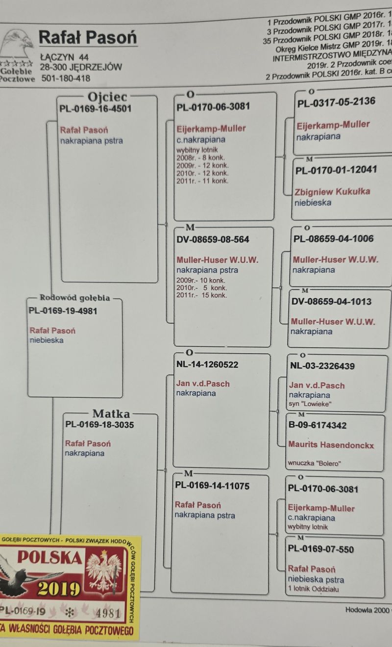 Oryginalny gołąb z hodowli Rafała Pasonia. Szczegóły pochodzenia w rodowodzie. Więcej informacji pod nr tel.: 664998188