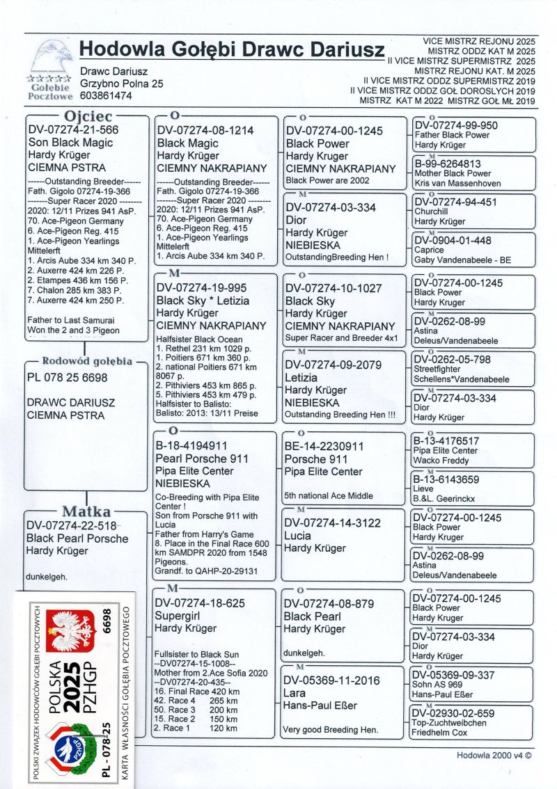 PL-078-25-6698 - ORYG. DRAWC DARIUSZ 100% HARDY KRUGER