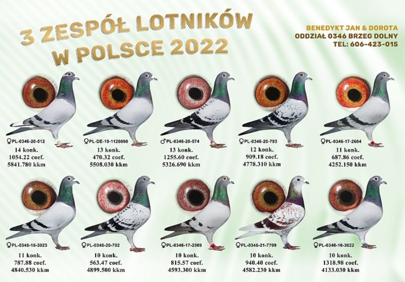 PL-0346-25-435 oryg. Benedykt J. i D. 2024r. Mistrz Okręgu kat A i GMP Młode 3 i 4-Zespół Lotników Polski HGP 2-przod. Mistrzostw Polski Kat.B 191 x Mistrz i Vice Mistrz Oddziału.