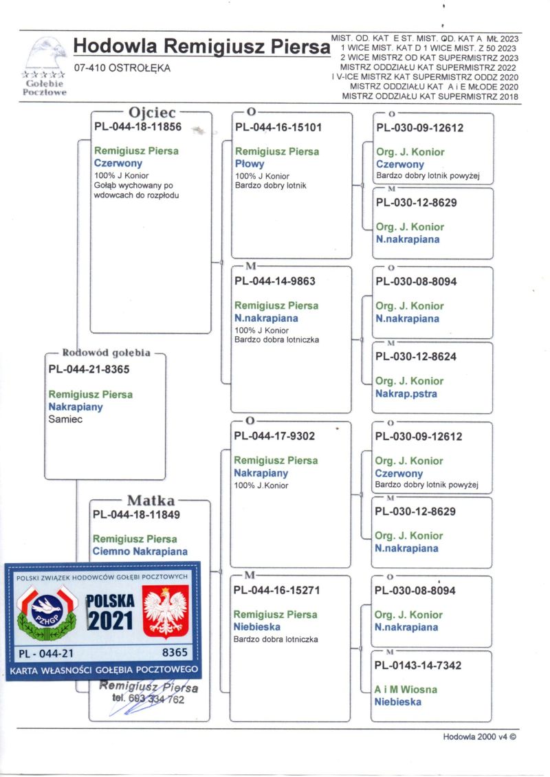 Oryginalny gołąb z hodowli Remigiusza Piersy . Szczegóły pochodzenia w rodowodzie. Dostawa gołębi będzie realizowana po zakończeniu aukcji kurierem lub odbiór osobisty. Więcej informacji pod nr tel.: 693334762