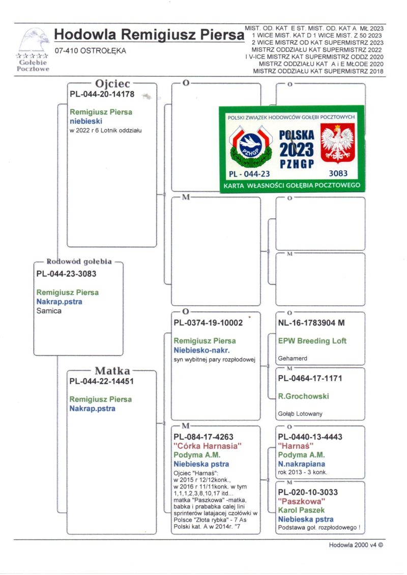Oryginalny gołąb z hodowli Remigiusza Piersy . Szczegóły pochodzenia w rodowodzie. Dostawa gołębi będzie realizowana po zakończeniu aukcji kurierem lub odbiór osobisty. Więcej informacji pod nr tel.: 693334762