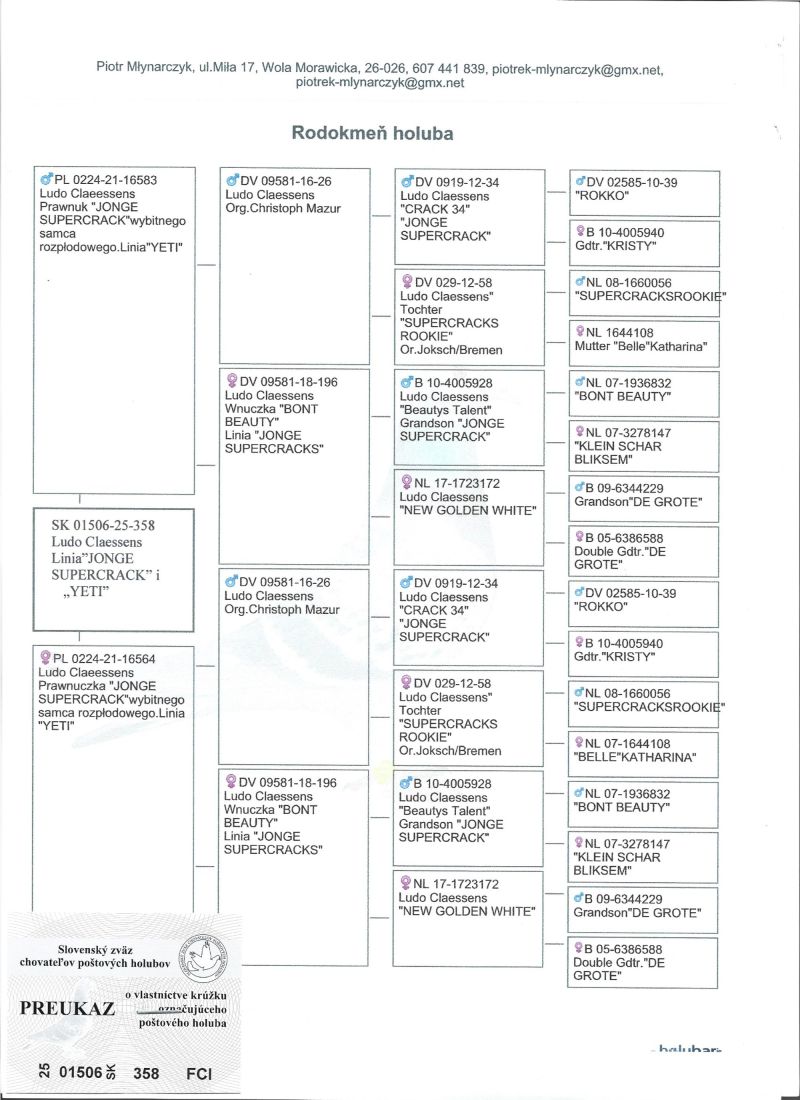Ludo Claessens po oryginałach od Christoph Mazur. Linia 'Yeti" i "Jonge Supercrack". Gołąb zaszczepiony MSV i odrobaczony. Transport kurierem 150zł.Albo odbiór osobisty.