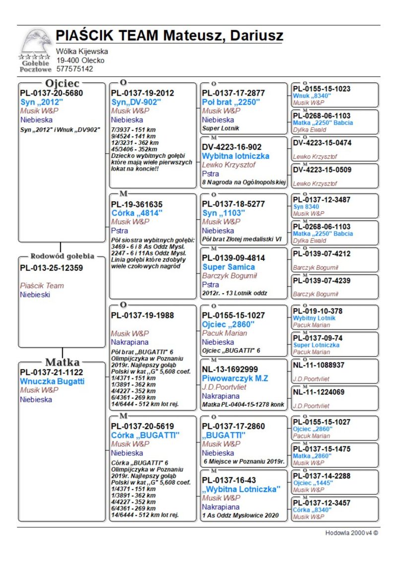 DZIECKO SAMCA "5680" JEST ON WNUKIEM BARDZO DOBREJ LOTNICZKI "902" - 8 AS POLSKI KAT. A 2019R / W SEZONIE 2018R - KAT. A - 1,85COEFF. | WNUK WSPANIAŁEJ LOTNICZKI I SAMICY ROZPŁODOWEJ "09-4814" ORG. ŚP. BOGUMIŁ BARCZYK - SAMICA TA WYDAŁA WIELE WSPANIAŁYCH LOTNIKÓW! | DZIECKO SAMICZKI "1122" - JEST ONA WNUCZKĄ OLIMPIJCZYKA "BUGATTI" - KAT. SPORT G - 5,62COEFF. ZDOBYŁ M.IN.: 1, 1, 4, 6, 14... |Wiecej informacji o gołębiu pod nr tel.:577575142 Szczegóły pochodzenia gołębia w rodowodzie