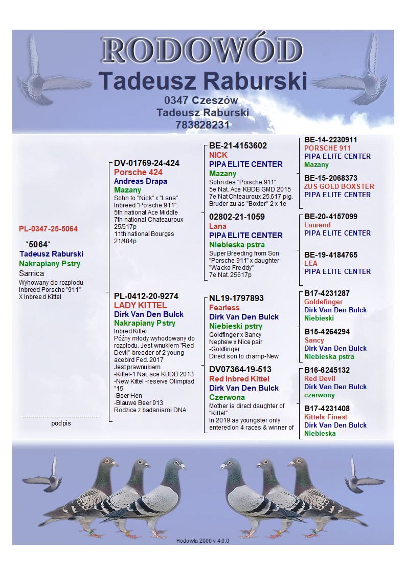 Hodowla skupiona w lotach gołębi na wspólnych gołębnikach z wieloma sukcesami. Zaprasza Państwa do licytacji wartościowego materiału do dalszej hodowli. Proponowany gołąb to dwie super linie gołębi inbreed Porsche 911 x inbreed Kittel Więcej informacji w rodowodzie oraz pod nr. tel. WYSYŁKA 100ZŁ