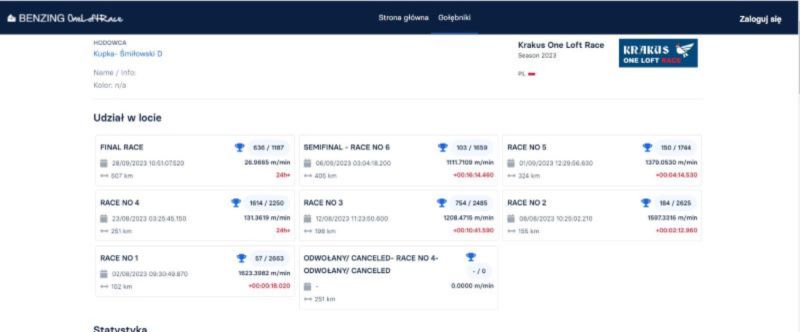 Gołąb pochodzi z hodowli Władysław & Michał Rzenno. Gołębie lotowane w lotach gołębi młodych. Wyniki hodowli do sprawdzenia na stronie oddziałowej: