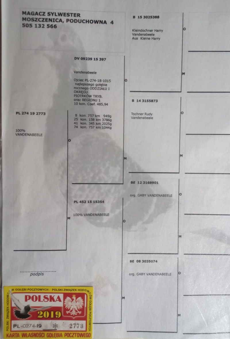 Oryginalny samiec hodowli Sylwester Magacz 100% Vandenabeele super pochodzenie oraz budowa polecam do dalszej hodowli wysyłka 165zl