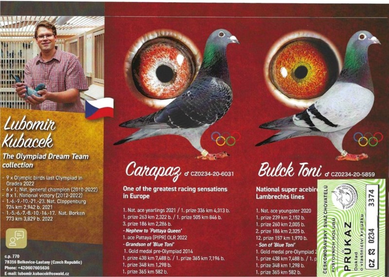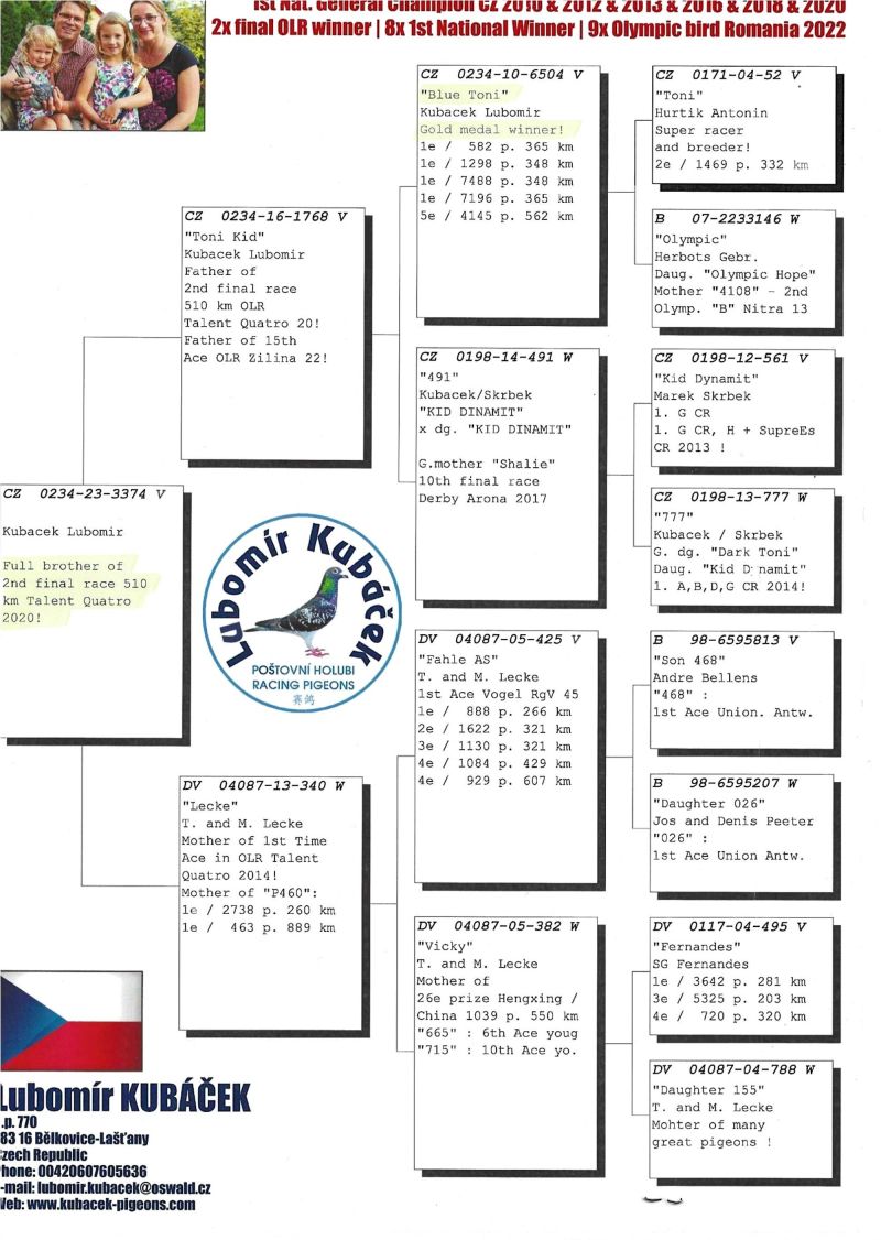oryginalny gołąb od Lubomira Kubacka kupiony bezpośrednio u hodowcy . pełny brat finalisty Talent Quatro lotu 510km. linia olimpijska Blue Toni złoty medalista