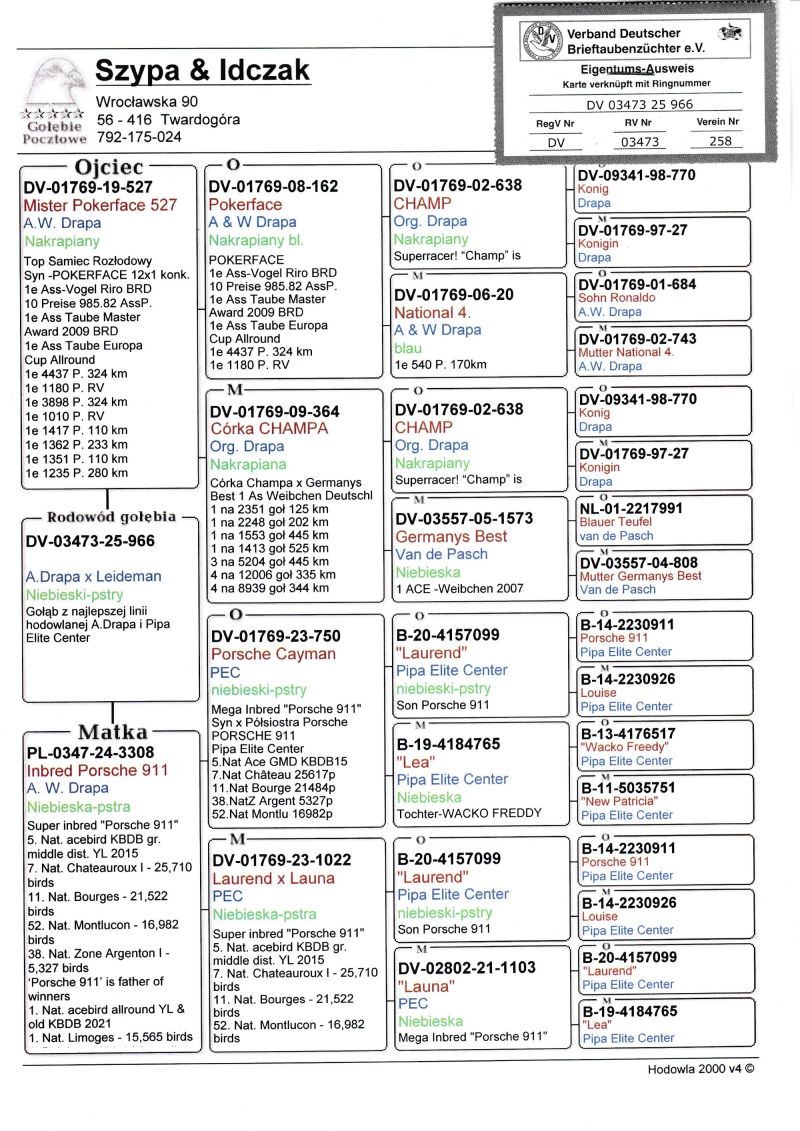 Profesjonalna hodowla z wieloletnim doświadczeniem, posiadająca w swoim stadzie materiał najwyższej światowej klasy. Więcej informacji w załączonych materiałach oraz pod nr tel. 792-175-024 Oferowany gołąb to prawdopodobnie SAMIEC. Płeć pisana orientacyjnie Wysyłka 100 zł
