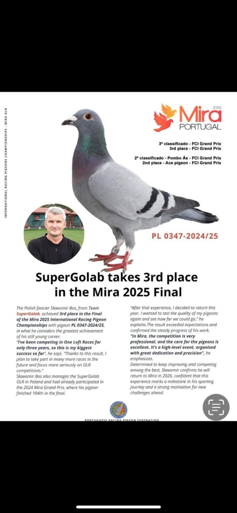 Płeć: młody gołąb Hodowca - rasa: TADEUSIAK-IDCZAK Zakończenie: 23.11.2025 godz. 20:38