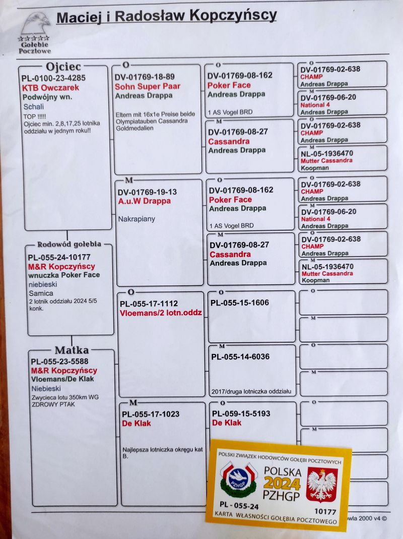 Oryginalny gołąb z hodowli M. i R. Kopczyńscy. Samica z 4 drużyny w Polsce w lotach gołębi młodych Szczegóły w rodowodzie. Więcej informacji pod nr tel.: 665-978-510