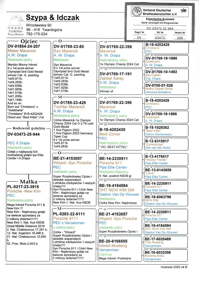 Profesjonalna hodowla z wieloletnim doświadczeniem, posiadająca w swoim stadzie materiał najwyższej światowej klasy. Więcej informacji w załączonych materiałach oraz pod nr tel. 792-175-024 Oferowany gołąb to prawdopodobnie SAMIEC. Płeć pisana orientacyjnie Wysyłka 100 zł