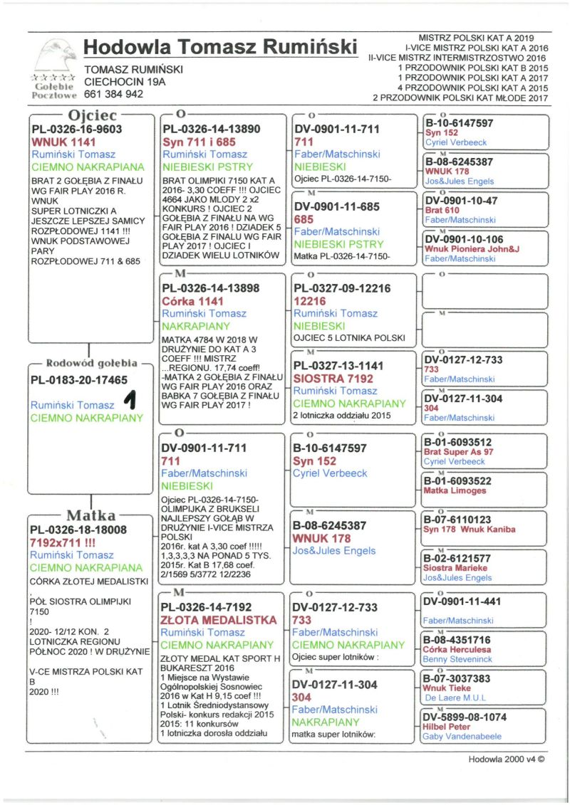 Oryginalny gołąb z hodowli T. Rumiński. Więcej informacji w rodowodzie oraz pod telefonem: 788380579
