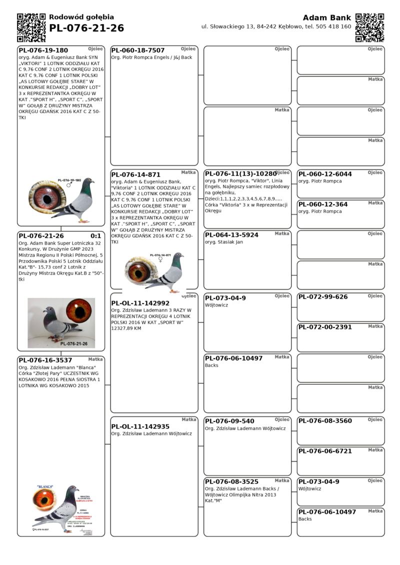 PL-076-21-26 - Oryg. Adam Bank - Kat.B 15,73 coeff. 2 Lotnik z Drużyny Mistrza Okręgu Kat.B