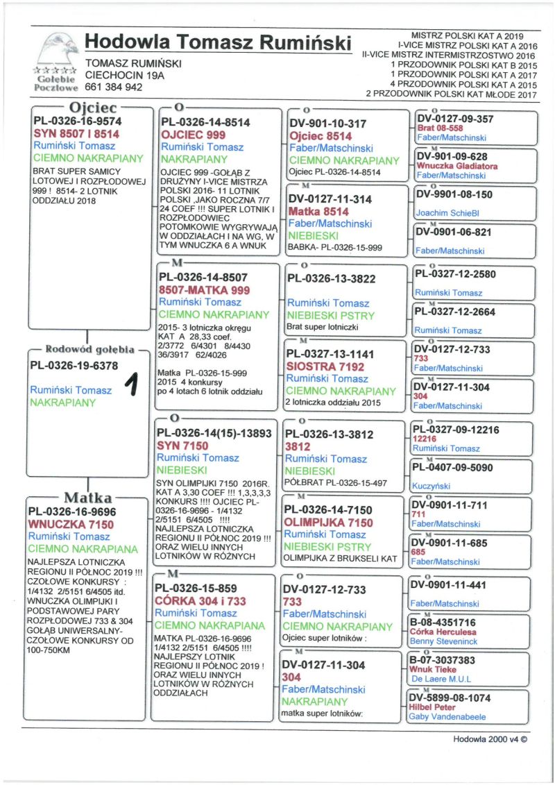 Oryginalny gołąb z hodowli T.Rumiński. Więcej informacji w rodowodzie oraz pod telefonem: 788380579