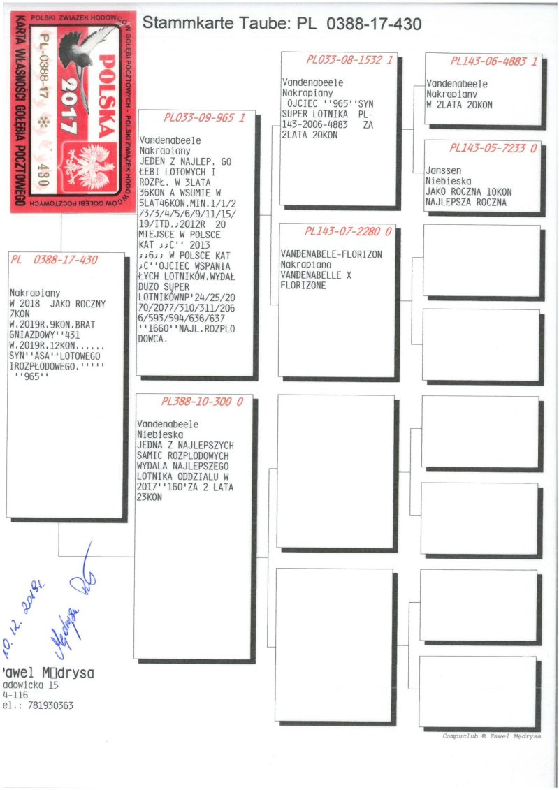 Oryginalny gołąb z hodowli P.Mędrysa. Więcej informacji w rodowodzie oraz pod telefonem: 788380579