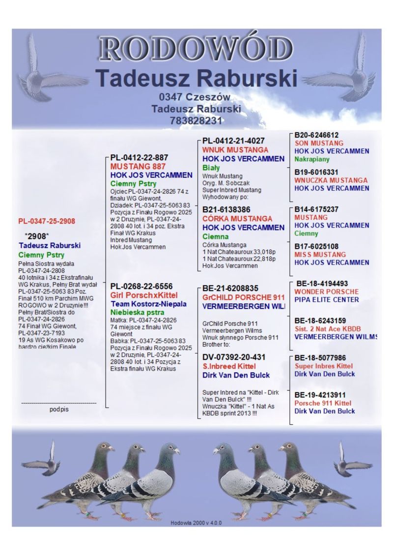 Hodowla skupiona w lotach gołębi na wspólnych gołębnikach z wieloma sukcesami. Zaprasza Państwa do licytacji wartościowego materiału do dalszej hodowli. Proponowany gołąb to